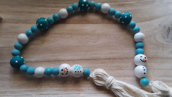 I always wondered why those farmhouse bead garlands were so expensive..now I know! It took me hours to make this Christmas one, especially painting each wooden bead and the Santa belts and making tassels is not my forte! However, I am pretty happy with it! Next up..a rag fabric Christmas tree...at least that's the plan...